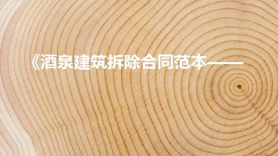 《酒泉建筑拆除合同范本——从起草到签署全流程详解》