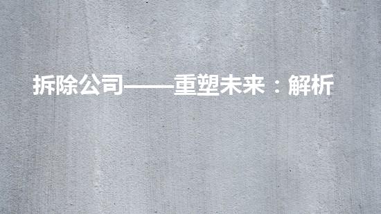 拆除公司——重塑未来:解析拆除过程中需注意的问题及解决方案