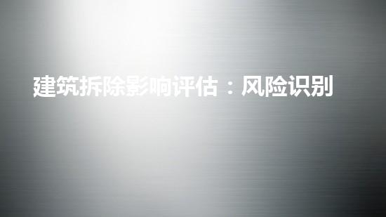 摘要:建筑拆除是一项非常复杂的工作,需要专业的技术人员进行评估和规划。本篇文章将从拆除行业专家的角度出发,深入探讨建筑拆除影响评估的风险识别与预防策略。通过对不同方面的详细阐述,希望为读者提供对建筑拆...