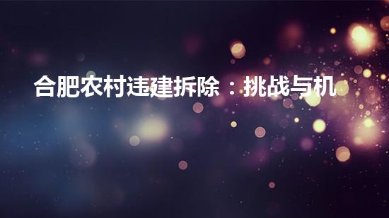 摘要:近年来,随着城市化的快速发展和农村经济的迅速崛起,合肥地区的农村违建问题日益严重。农村违建不仅破坏了乡村的生态环境,还影响了农村的整体形象和规划建设。本文通过专家角度,深入探讨了合肥农村违建拆除...