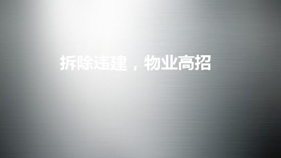 摘要:本篇文章将重点介绍拆除违建和物业高招,旨在引起读者的兴趣,并为他们提供背景信息。随着城市建设的不断扩张,拆迁工作也越来越多。本文将从专业的角度出发,探讨拆除违建和物业高招的各个方面。正文:一、拆...