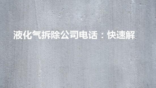 摘要:本文将介绍液化气拆除公司电话,探讨如何快速解决拆除难题。有了这个电话,企业在拆除工程中遇到的各种问题可以快速得到专业的回答和帮助。本文将从专业化的角度出发,探讨液化气拆除公司电话的优势和重要性,...