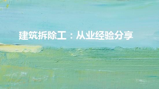摘要:建筑拆除工是一项危险且需要专业技能和经验的工作。本文从拆除行业专家的角度出发,对建筑拆除工的从业经验进行分享。我们将从以下方面展开:工作前准备、安全措施、拆除技术、环保施工、项目管理及创新技术。...