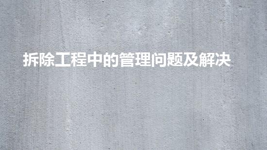 摘要:在拆除工程中,管理问题一直是制约项目顺利进行的主要瓶颈,尤其是在大型化工厂或工业园区内进行拆除,需要考虑的问题更加复杂。本文将从准备工作、人员管理、安全措施、环保施工、技术应用等方面探讨拆除工程...