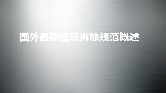 摘要:建筑拆除在现代建筑行业中扮演着越来越重要的角色,因此,建筑拆除行业的规范也不断进化和完善。本文将围绕国外最新建筑拆除规范进行概述,并从各个角度深入阐述其特点及应用。正文:一、安全防护建筑拆除过程...