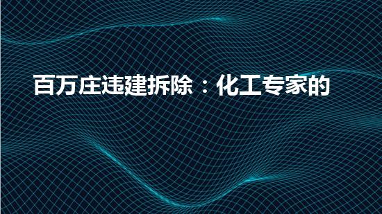 百万庄违建拆除:化工专家的技术方案摘要:本文旨在探讨百万庄违建拆除工程中需要采用的切实可行的化工专家技术方案,以达到高效、安全、环保的拆除目的。文章对该工程所需的设备回收、污泥减量化、废液处理、危废处...