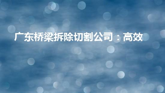 广东桥梁拆除切割公司:高效率、低成本、卓越品质