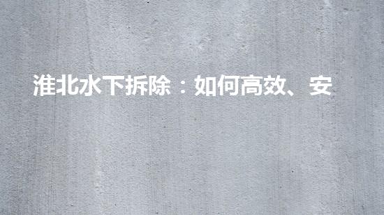 淮北水下拆除:如何高效、安全、环保?摘要:随着中国化工工业的快速发展,化工企业的拆除也变得更为常见。淮北水下拆除作为一项高危行业,在保证高效、安全、环保的前提下,需要付出更多的努力来完成任务。在本文中...
