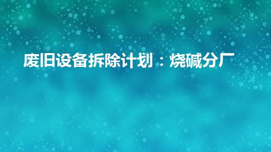 摘要:本文将介绍废旧设备拆除计划:烧碱分厂新篇章。在介绍废旧设备拆除计划的同时,文章将引出读者的兴趣,提供背景信息。文章的主要内容将分为四个小标题,对废旧设备拆除计划进行深入详细,并进行专业的分析介绍...