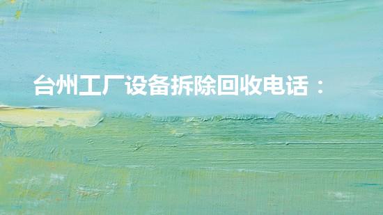 摘要:台州工厂设备拆除回收电话为专业高效、全方位服务。本文将深入探讨台州工厂设备拆除回收电话的重要性与优势,以及该服务的方方面面,为您深度剖析这一话题。正文:一、合理回收设备可节约成本台州工厂设备拆除...