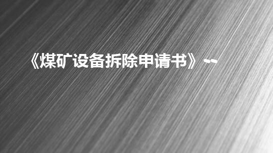 《煤矿设备拆除申请书》--拆除前安全评估与保障方案