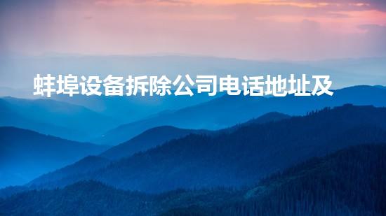 蚌埠设备拆除公司电话地址及服务详解