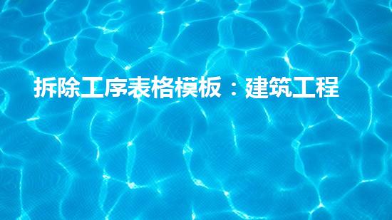 摘要:作为拆除行业专家,拆除工序表格模板:建筑工程计划与安全验收对于我们的工作有着重要的意义。本文就从几个方面对该模板进行深入阐述,包括拆除前准备、危险源辨识、风险评估、安全预案等内容。同时,我们还将...