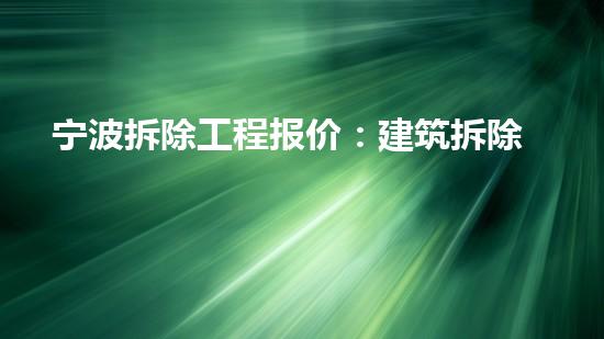摘要:作为化工技术专家,在宁波拆除工程报价方面,建筑拆除价格是构成其中关键因素之一。本文将从不同角度对宁波拆除工程报价:建筑拆除价格参考做详细的阐述和分析,涉及拆除成本构成、工程难度评估、危险因素控制...