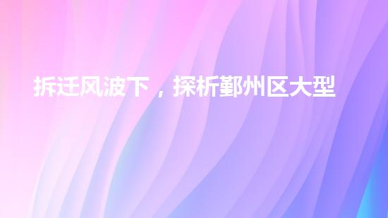 近年来,拆迁风波在中国各地都不断上演,涉及各行各业的业务。鄞州区大型设备拆除作为一个重要的领域,不仅会直接影响企业的生产经营,还会对区域经济带来深远的影响。本文将从不同的角度探讨鄞州区大型设备拆除的现状和影响,旨在提高公众对这一问题的关注度。