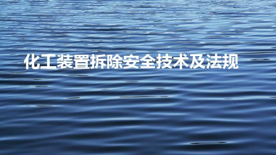 国家质量监督检验检疫总局公布的《化工装置拆除安全技术规范(GB 10319-2008)》规定了化工装置拆除的操作规范和流程,包括拆除前准备、员工安全和生产环境保护等等。