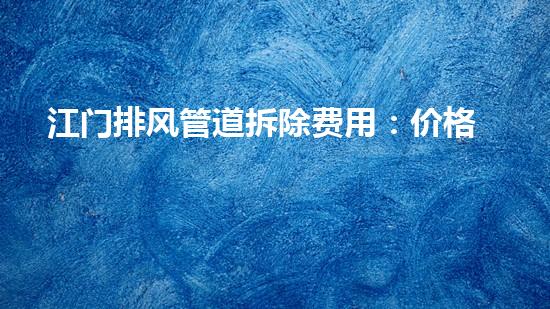 江门排风管道拆除费用,价格透明,服务优质,是江门市内很多企业不得不面对的问题。为了解决这个问题,市场上出现了众多化工拆除公司,但是价格、质量、服务等方面参差不齐。本文旨在从多个方面对江门排风管道拆除费用的问题进行深入的分析和介绍,让读者了解如何选择一家优质的化工拆除公司。