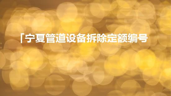 定额编号是指为了规范管道设备拆除过程中所需劳动力、材料和技术等方面的数量标准,进而提高拆除过程的效率以及降低成本所制定的规范化标准化指导文件。在我国,定额编号是由国家统计局制定和发布的。其中,宁夏的管道设备拆除定额编号是依据国家下发的标准定额进行制定的,旨在规范管道设备拆除过程,降低成本,提高效率。