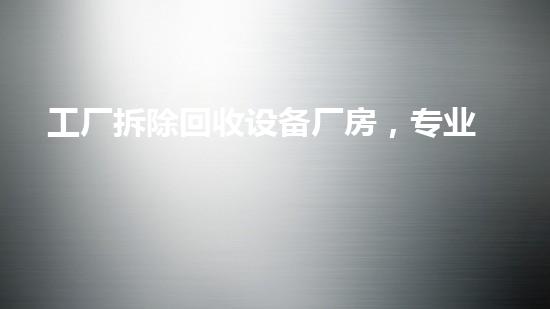 工厂拆除回收设备厂房是一项专业高效的绿色回收行业,此行业除了能够很好的环保共赢之外,也能在一定程度上回收公司的资产,减少公司的破产损失。文章将从四个方面详细解释工厂拆除回收设备厂房,包括水刀不动火拆除技术、危废处理、设备回收和土壤修复。