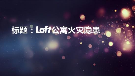 随着城市化的发展和人们对生活品质和个性化的需求不断提升,越来越多的旧工业区被改造成Loft公寓。Loft公寓以其独特的装修风格和开放的空间设计吸引了大量年轻人。然而,这些旧工业建筑在保留原貌的同时,也存在一系列的安全隐患,如消防问题和建筑材料问题等。