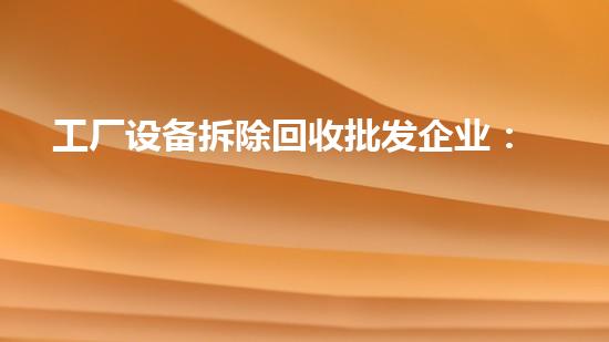 工厂设备拆除回收批发企业是一个专门从事环保、回收、拆除和再利用工厂设备的企业。本文将深入介绍该企业的服务和方法,并强调其对环保、产业经济的重要作用。