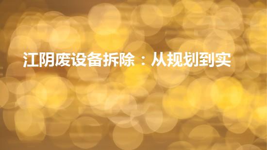 江阴废设备拆除的规划和实施过程中需要关注多个因素,如拆除方案规划、拆除工程实施、设备回收、危废处理、土壤修复等,同时还需要注意拆除过程安全和环保等问题。巴洛仕集团在化工拆除方面具有较强的专业技术和丰富的经验,其中不动火拆除技术和水刀技术可以帮助企业高效率、高安全、高环保地进行拆除工作。对于有废设备拆除需求的项目来说,巴洛仕集团的拆除服务方案是一个非常好的参考。