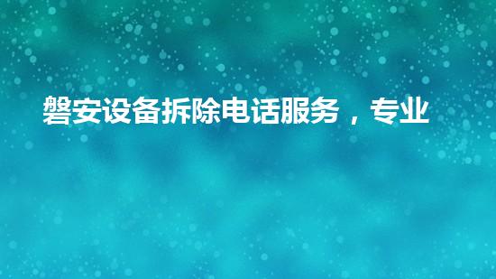 磐安设备拆除电话服务,专业高效的设备拆卸解决方案,帮助客户安全、高效的拆除设备,以便更好的进行设备更新或升级。本文将从接受服务的过程、工作流程、拆除方案、专业技能、人员安全以及旧设备回收这几个方面来详细介绍磐安设备拆除电话服务以及解决方案的优点。