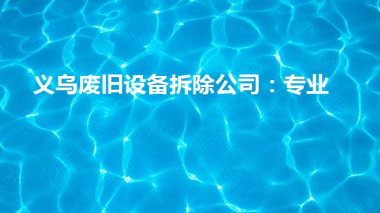 义乌废旧设备拆除公司是一家专业的拆除公司,致力于为客户提供高质量、高效率的拆除服务。该公司拥有丰富的经验和专业的技术团队,在环保处理方面也十分注重。本文将从多个方面对该公司的服务进行详细介绍,为读者深入了解该公司以及相关领域提供参考。