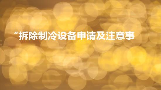 拆除制冷设备需要进行专项申请,并且需要通过相应的审批才能进行。一般情况下,申请需要提交以下材料:相关设备图纸、设备清单和设备检测报告。此外,还需要提交设备拆卸方案、作业环境安全措施和现场应急预案。