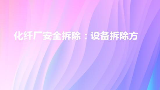 本文介绍了化纤厂安全拆除的设备拆除方案模板及实践。巴洛仕集团化工拆除一站式解决方案,水刀不动火拆除技术应用,油罐拆除,化工厂拆除,设备回收,危废处理,土壤修复等技术被广泛应用于化纤厂安全拆除,为化工行业创造了安全可靠的环境。
