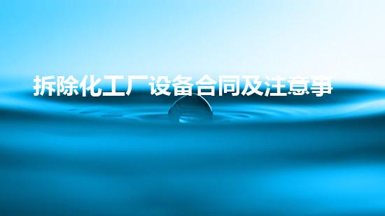 拆除化工厂设备的合同使整个拆除过程得以有效计划和管理的关键。这个合同应包括拆除的设备和结构物清单、拆除的时间表、负责其他任务的人员的名称、描述拆除过程中遇到的不寻常状况的程序以及合同的支付条款和条件。