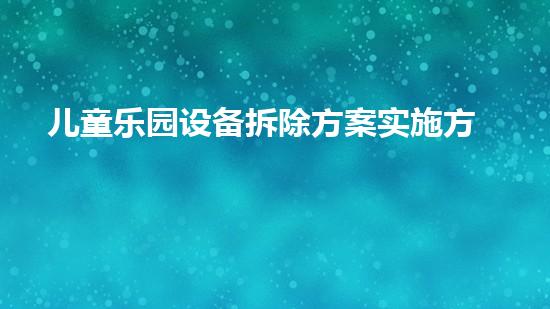 儿童乐园设备的拆除是必要的,因为它不仅可以保障儿童的安全,还可以增强儿童乐园的新颖性和吸引力。本篇文章将讨论关于儿童乐园设备拆除方案实施方案及注意事项。在具体实施方案及注意事项的讨论中,本文还将提到巴洛仕集团化工拆除一站式解决方案,水刀不动火拆除技术应用,油罐拆除,化工厂拆除,设备回收,危废处理,土壤修复等研究成果。