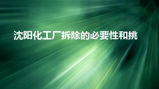 沈阳化工厂的拆除是一项困难而复杂的任务,它需要考虑到许多方面的问题,包括技术、环保、安全等等。首先,沈阳化工厂的历史悠久,年代久远,拆除过程中会受到历史遗产保护的限制,因此需要一套专业的解决方案。其次,化工厂区域内存在大量的危险品及废弃物质,需要采取科学、严谨、环保的方式进行化学物质的抽出和危险废物的处理。再次,拆除过程中需要考虑生态环境和周边群众的利益,需要设计周全的施工方案,以保证沈阳化工厂拆除工作的安全、环保和可持续发展。