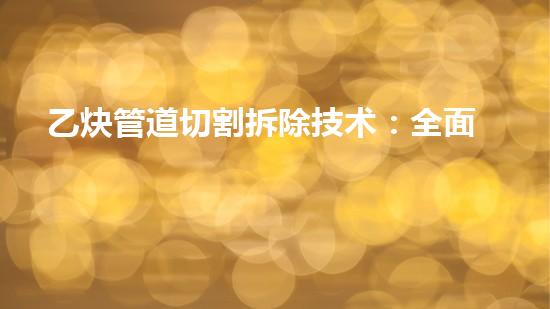 本文将从乙炔管道切割拆除技术出发,全面解析这项重要的技术。乙炔管道切割拆除技术是一种常用的工业拆除技术,其应用范围广泛,涉及到许多行业。通过本文的介绍,读者将了解到该技术的基本原理、应用场景、优点和缺点等方面的内容,更好地理解该技术的实践应用。