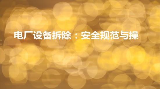 本文将为读者介绍电厂设备拆除的安全规范和操作要点。随着现代化的工业生产模式的发展,电厂拆除工作已经成为了不可避免的环节,在这个过程中,如何保障工作人员和环境的安全是一个非常重要的问题。本文将介绍在电厂设备拆除过程中的安全规范和操作要点,旨在提高工作效率的同时确保工作人员和环境的安全。