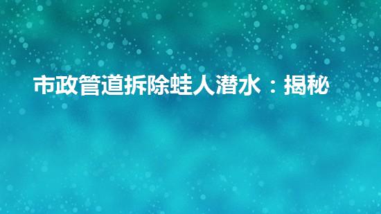 市政管道拆除蛙人潜水:揭秘车水马龙之下的繁忙工作