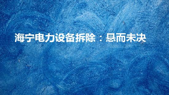 海宁电力设备拆除的争议引发了广泛关注。这场争议已经持续了数年,涉及到许多利益方的利益。本文将深入探讨这场争议的各个方面,并为读者提供详细的背景信息。通过分析争议的不同角度,我们希望能够为读者提供更全面的了解,以便他们做出自己的判断。