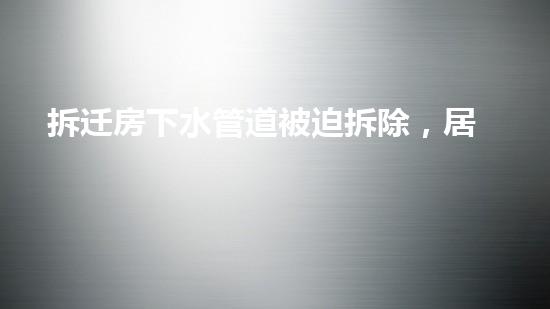 拆迁房下水管道被迫拆除,居民生活陷困局是一个复杂的问题,不仅给居民的生活造成巨大的影响,同时也对城市环境和居住品质带来负面影响。解决这一问题需要多方联手,共同处理。