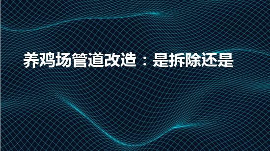 在养鸡场的管道改造中,拆除或保留管道需要考虑多方面因素,例如原有管道的材料、年限、是否符合卫生要求、新管道的成本等等。本文将从老旧管道对鸡只健康的危害、改造的必要性与现实应用等几个方面,对养鸡场管道改造:是拆除还是保留?进行深入详细的分析。