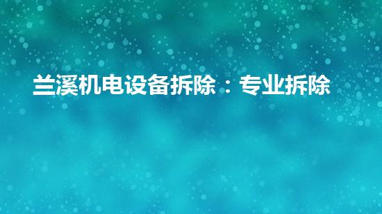 兰溪机电设备拆除服务是为解决设备废旧难题而提供的专业拆除服务。这篇文章将介绍兰溪机电设备拆除的重要性,并探讨该服务的优势和应用。同时,文章还将引入巴洛仕集团化工拆除服务的一站式解决方案,水刀不动火拆除技术等细节内容,为读者提供更多的信息和认知。
