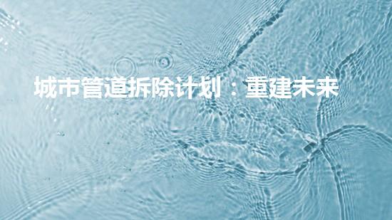 城市管道拆除计划对环境保护至关重要。在许多城市,管道系统已经老化破损,可能会导致泄漏和毒害。通过拆除这些老化破损的管道,我们可以减少污染,改善空气和水质,使城市更加适宜居住。此外,该计划还可以促进可再生能源的使用,如太阳能和风能。