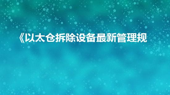 《以太仓拆除设备最新管理规定》是贯彻落实国家环保安全政策的重要措施。这个规定意在进一步加强以太仓拆设备的管理,保障人员的安全,防止污染和环境损失的发生。此外,该规定还明确了拆设备的程序、条件、标准及对设备拆卸的回收、处理方法等详细内容。