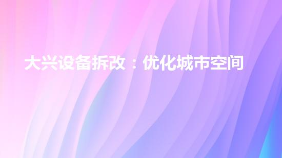 在城市化的进程中,为建设更好的城市,对旧设备的拆除和更新改造是必不可少的。大兴设备拆改正是由此而生,其重点在于优化城市空间,为经济发展提供一系列保障。