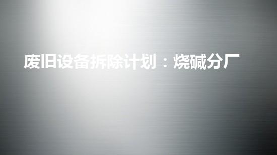 废旧设备拆除计划是指为了实现设备质量提高、生产效益提高、成本降低和环境保护而进行的设备拆卸、改造、处理、安装和调试等一系列维修活动。在此基础上,本文将介绍烧碱分厂的新篇章,寻找实现设备回收和危废处理的新途径。