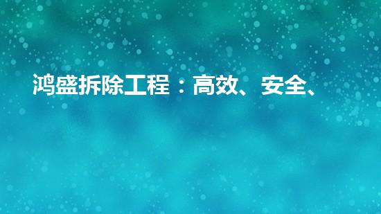 鸿盛拆除工程凭借先进的拆除技术、严格的安全管理、环保意识的贯彻以及全方位的专业服务,已经成为了拆除行业内的佼佼者。在未来的发展中,鸿盛拆除工程将继续秉持“高效、安全、环保”的理念,为客户提供更加优质的服务。同时,也希望越来越多的人能够关注拆除行业,推动行业的健康发展。