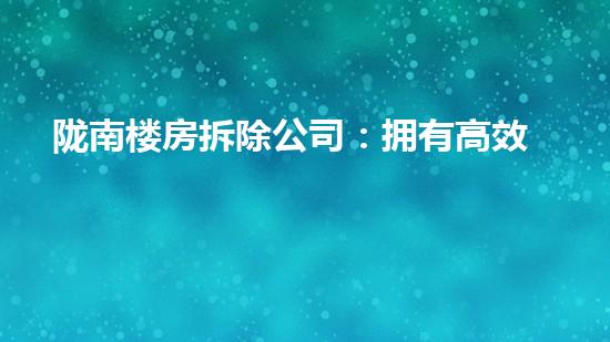 总之,陇南楼房拆除公司是一个高素质、高效率和专业化的拆除公司,它以完善的危废处理体系、先进的设备拆除技术、注重环保施工等特点而著称。随着公司的不断发展,我们有理由期待它在未来会有更多的拓展和突破。回顾本文中对该公司的深入分析,我们可以发现,公司的成功来自于它对人才、技术和环境保护的高度重视和持续投入。相信,通过陇南楼房拆除公司的这些特点,可以为该公司的客户提供更加优质的拆除服务,也为行业做出更大的贡献。