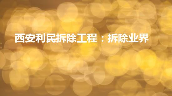 西安利民拆除工程是一家以拆除和清理为主要业务的公司,拥有众多技术专家,擅长各种复杂拆除和清理项目。本篇文章将聚焦于西安利民拆除工程所代表的拆除业界的技术专家,并从4个方面进行深入阐述。