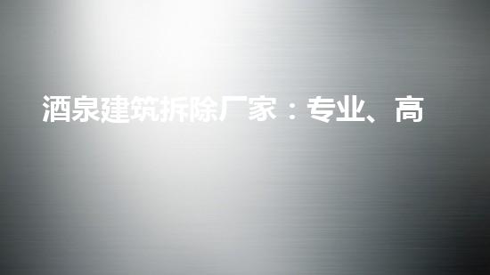 酒泉建筑拆除厂家是一家专业、高效、安全的建筑拆除服务提供商。本文介绍了该厂家的服务内容,并对其在专业、高效和安全方面的表现进行了深入探讨。
