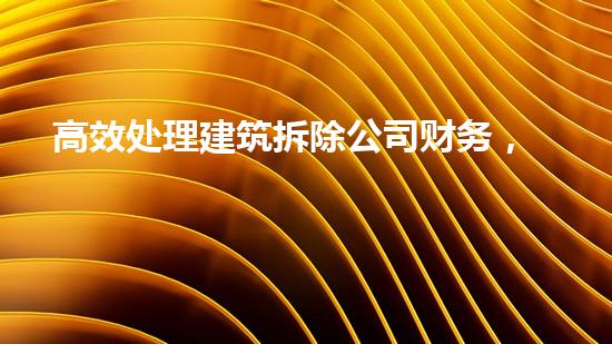 在建筑拆除行业,如何高效处理公司财务并降低成本,增加收益是每个公司都需要面对的问题。本文介绍了如何通过优化人力资源、招投标程序、设备和技术选型、废弃物管理等方面来高效处理建筑拆除公司财务,实现降低成本、提高收益的目的。