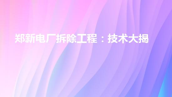 随着能源结构的调整以及环保意识的日益加强,更多的老旧电厂开始陆续进入拆除阶段。而对于电厂拆除工程来说,技术难点不仅仅是爆破拆除,更多的是安全环保和资源回收。本篇文章以 “郑新电厂拆除工程:技术大揭秘” 为主题,通过对拆除过程中几个关键技术的深入解读,带领读者了解电厂拆除工程的具体实践,并能够深刻认识到拆除工程带来的环境影响和资源回收利用的重要性。